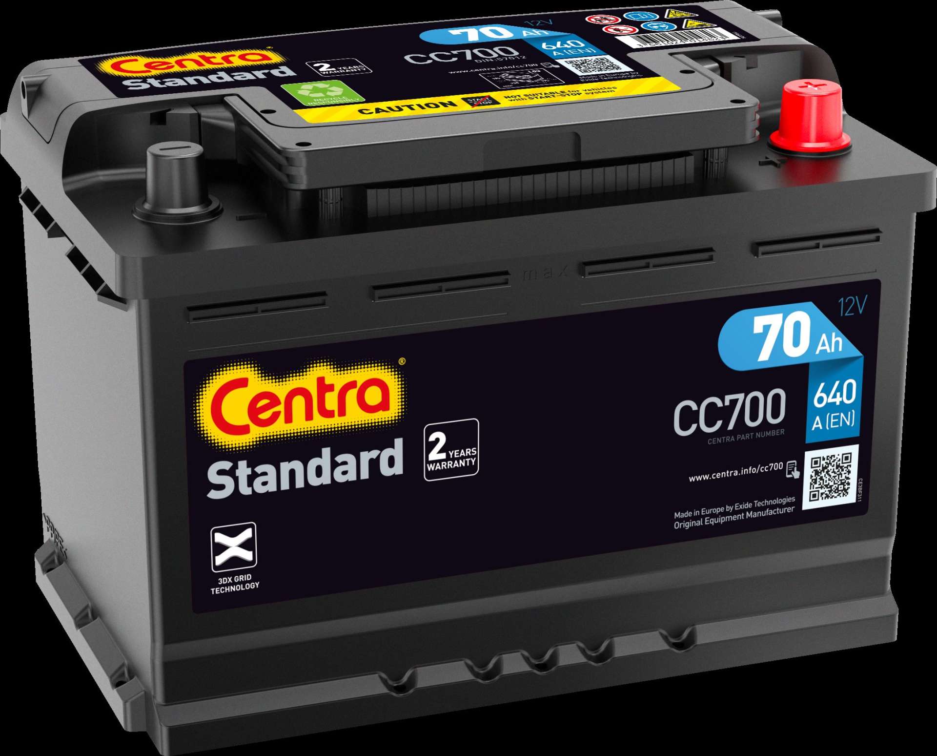 AKUMULATOR 70AH/640A +P 278X175X190 CENTRA STANDARD PLUS Z PRAWEJ 278X175X190